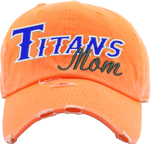 Washed style. 100% cotton made. Ponytail slot for high mess bun. Comes with embroidered Titans mom logo.